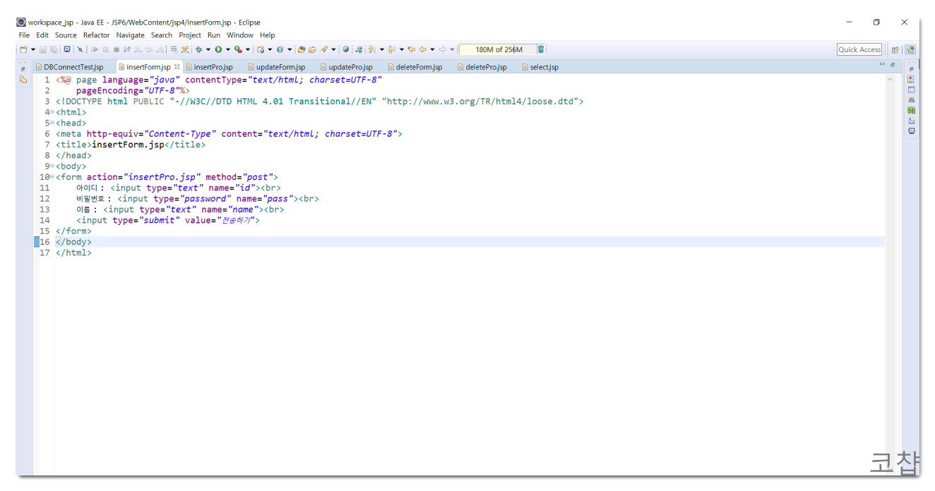 다음 단계는 필요한 SQL문을 작성하여 DB 데이터에 접근하는 것이다. 먼저 form 태그로 입력값을 넘겨준다.