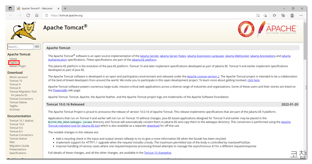 Apache Tomcat 홈페이지에서 Taglibs - Download를 들어간다.